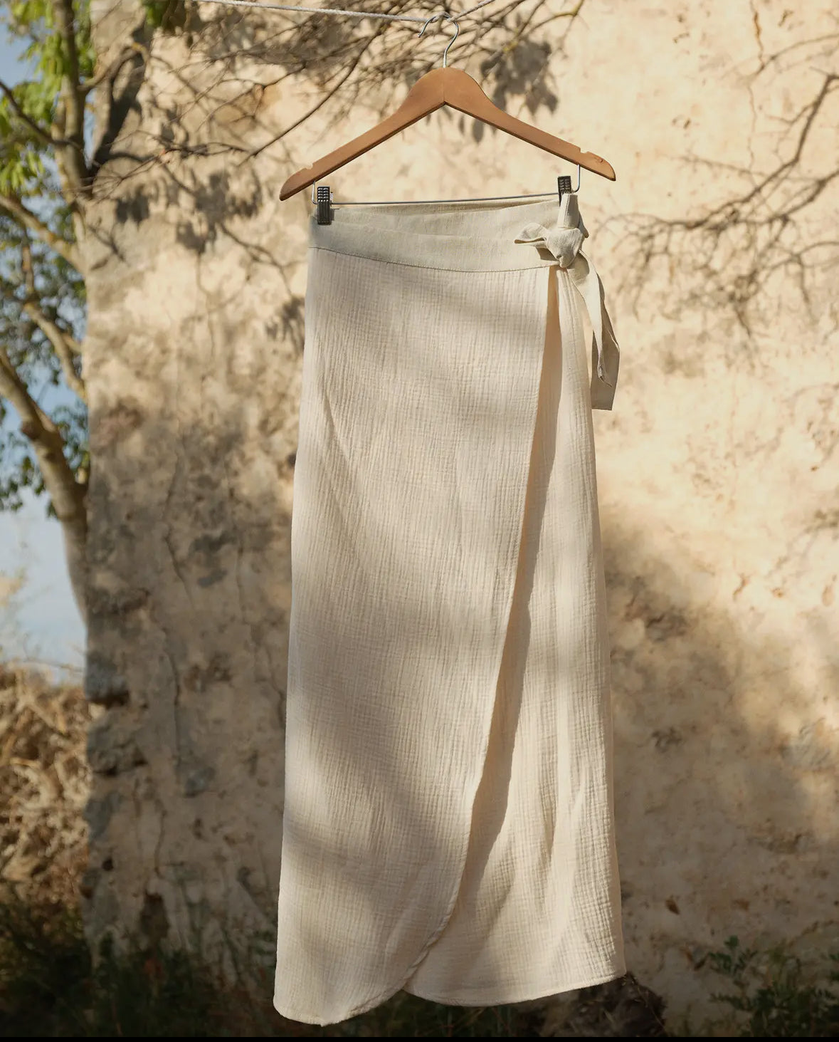 gonna lunga in garza di cotone, modello pareo, taglia unica.